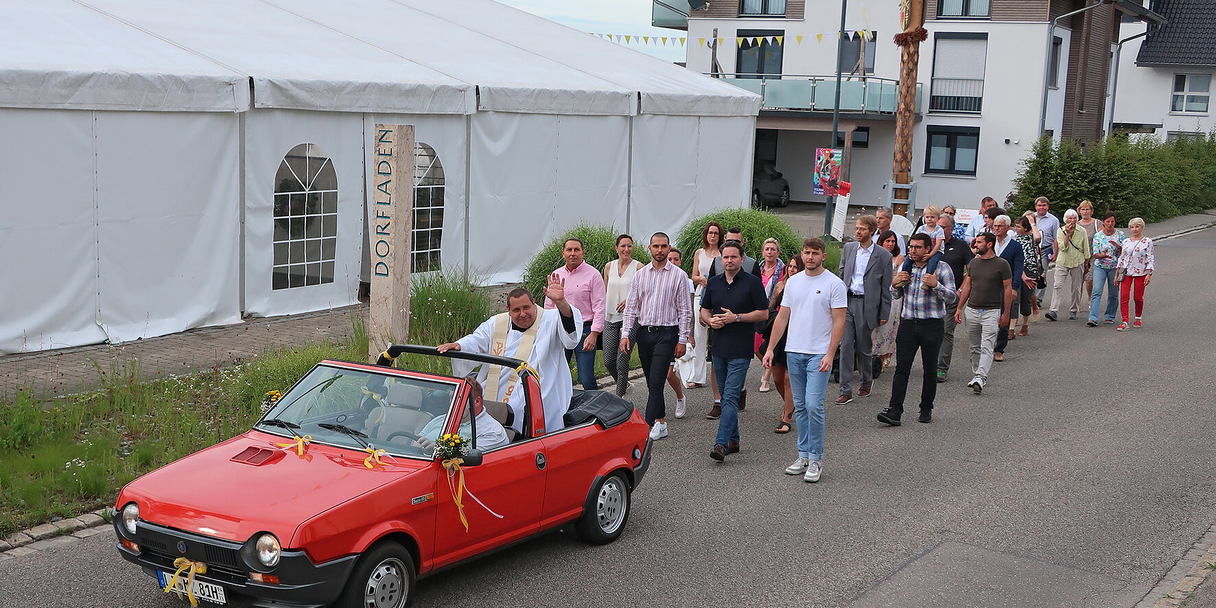 Danach feierten alle auf dem Dorfplatz den Geburtstag des Neupriesters.