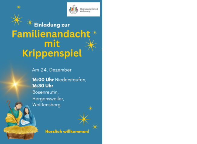 um 16:00 Uhr in Niederstaufen, um 16:30 Uhr in Bösenreutin, Hergensweiler, Weißensberg. Alle Familien sind herzlich eingeladen!