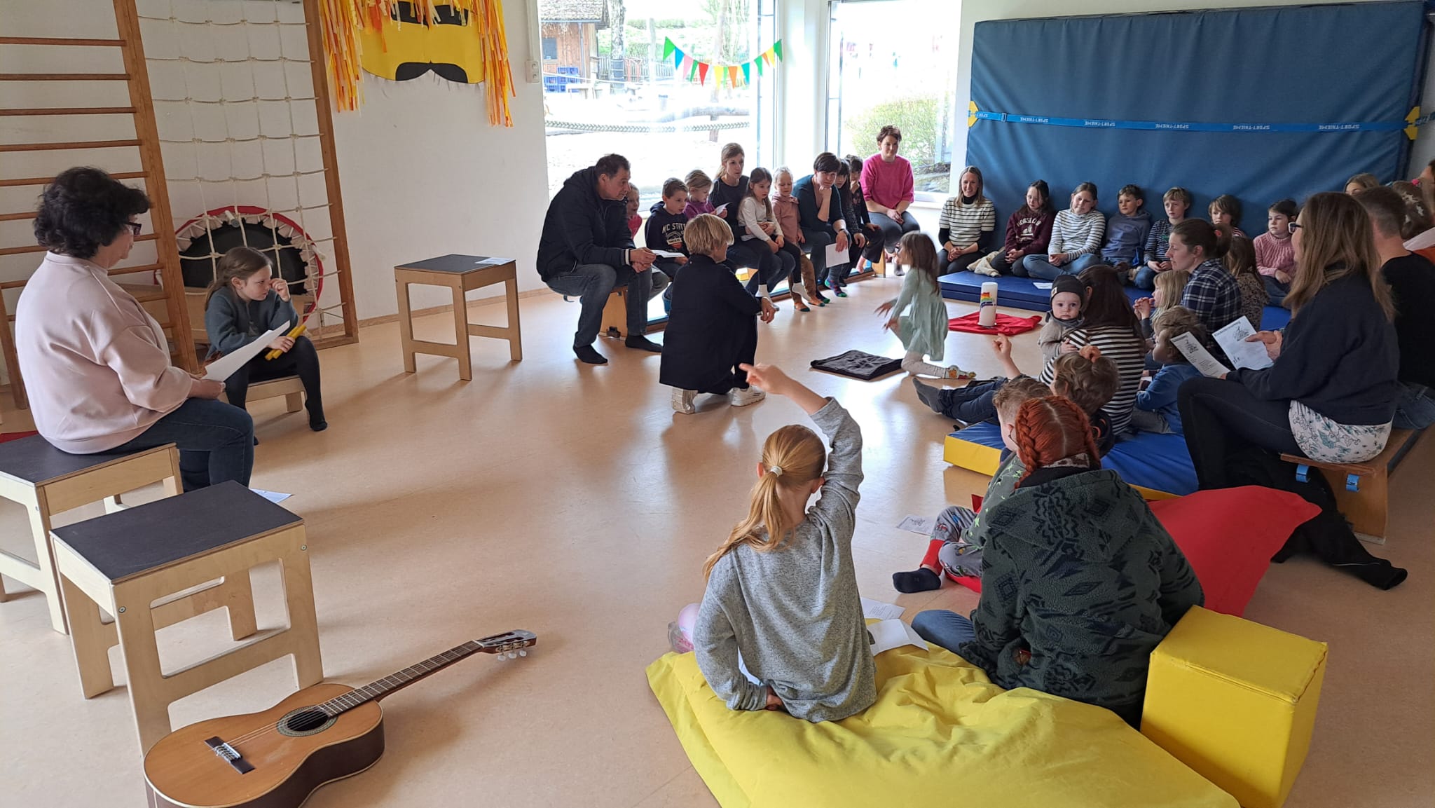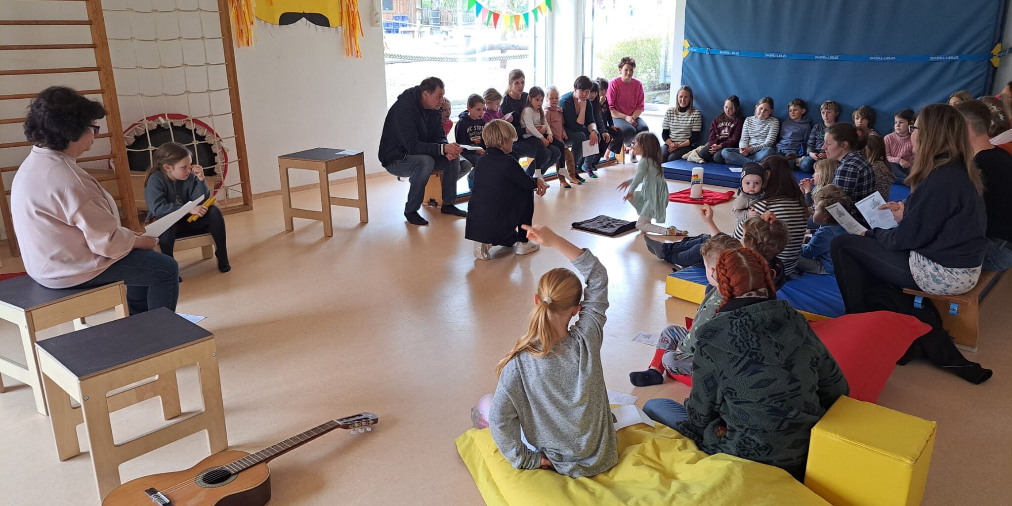 Am Karsamstag feierten viele Kinder die Auferstehung Jesu in der Sporthalle des Kindergartens in Weißensberg mit.
